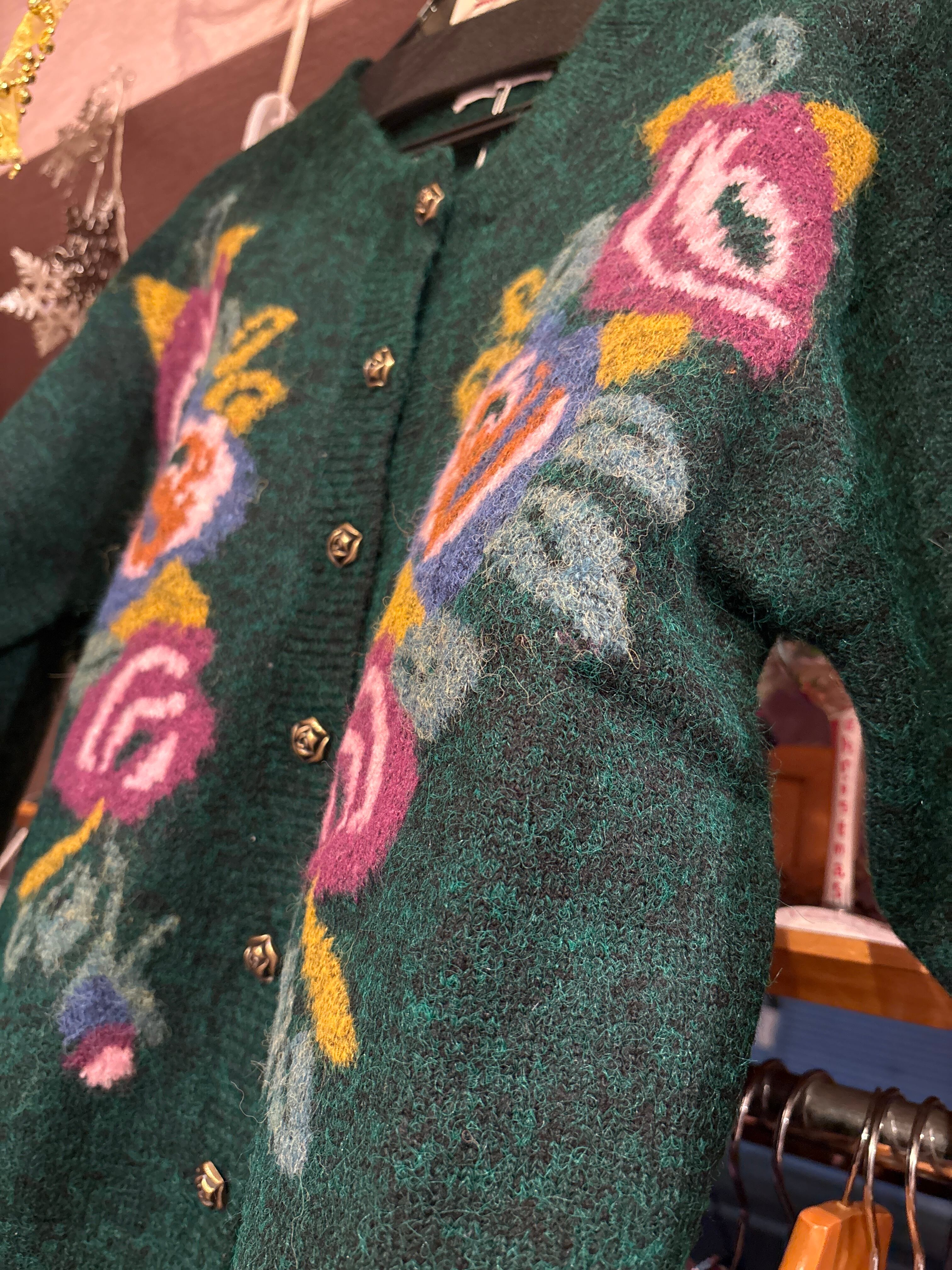 ローズ柄カーディガン/グリーン