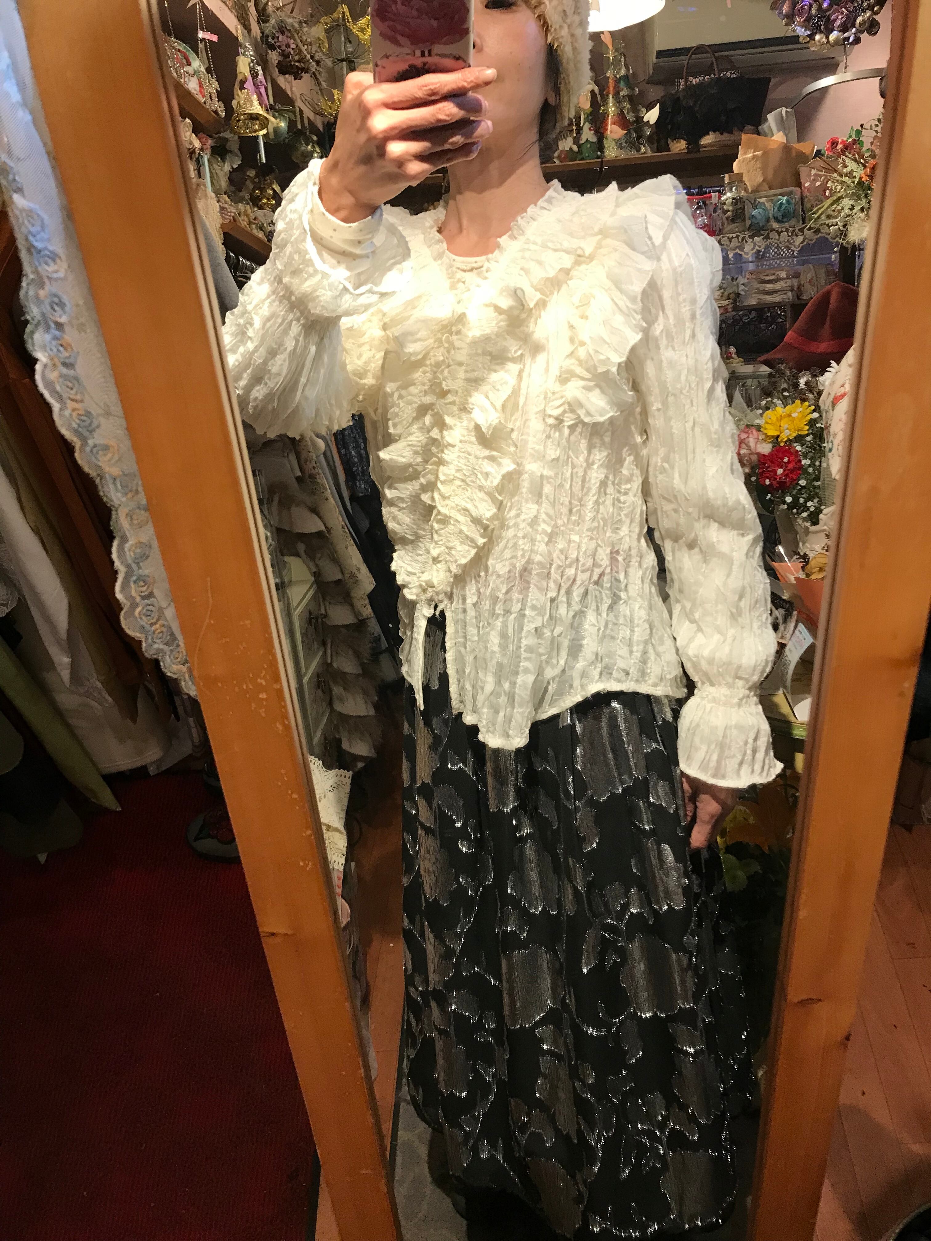 シフォンジャガードラメシルバーフラワータックスカート