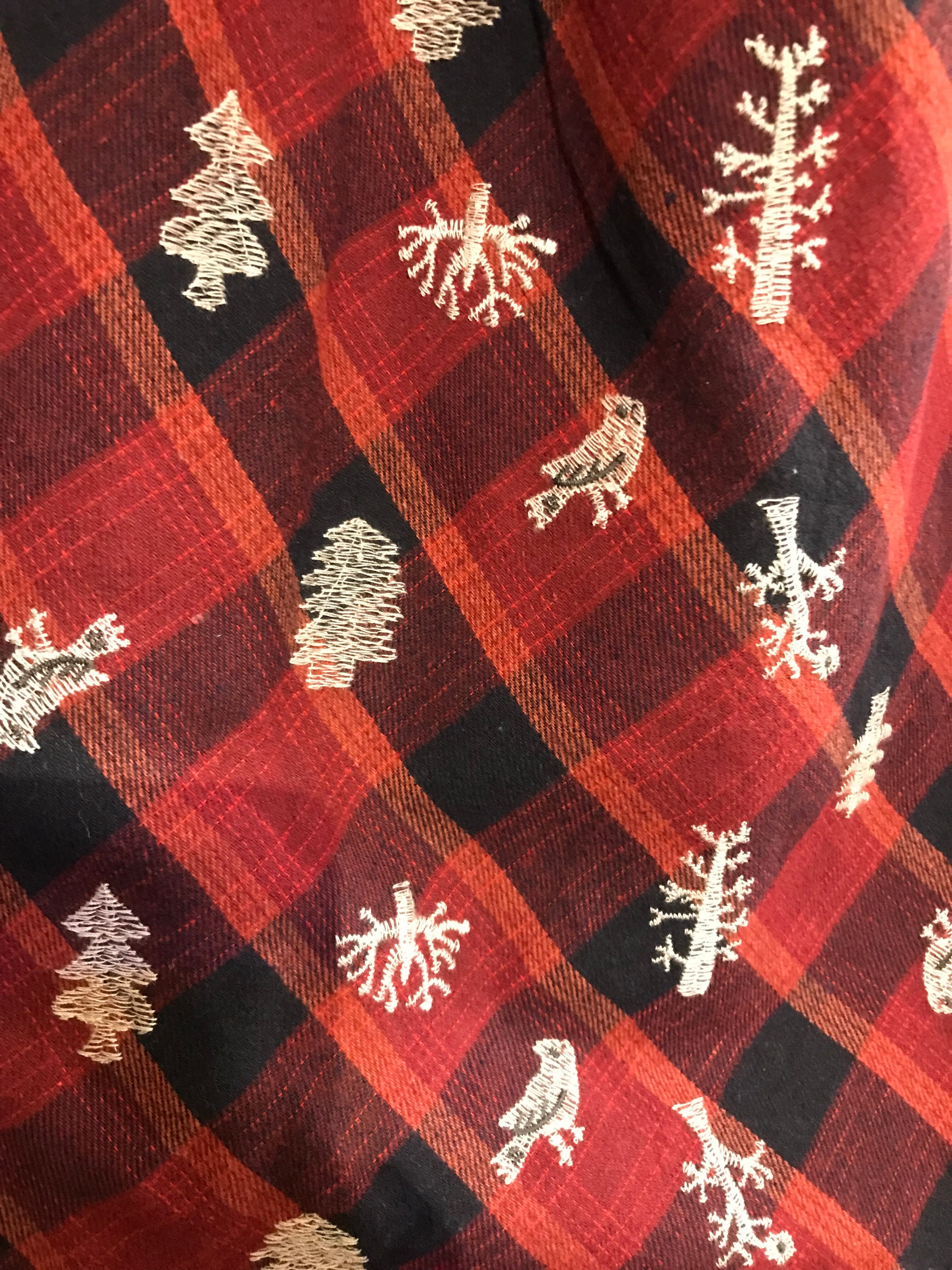 少し起毛のあるチェック生地に刺繍がはいったスカートです。
