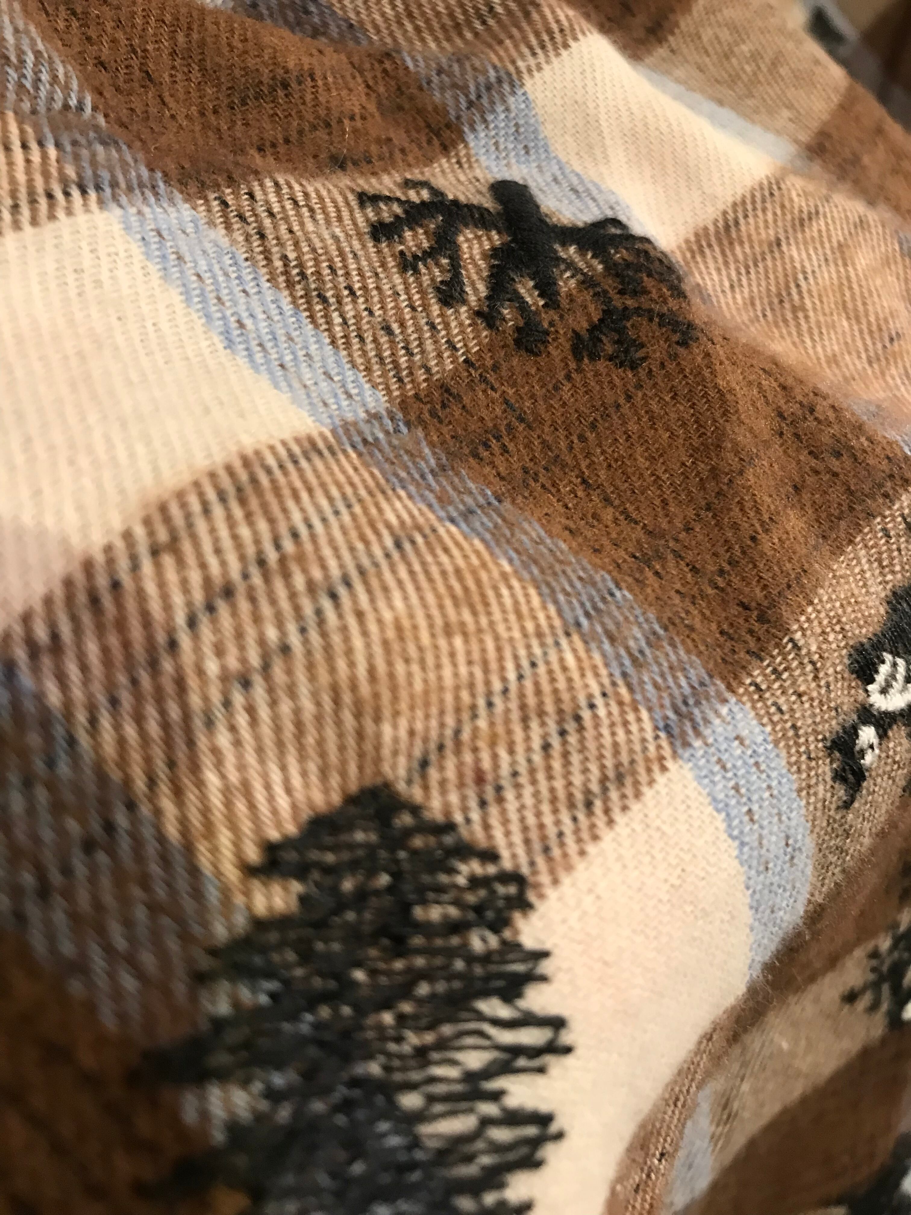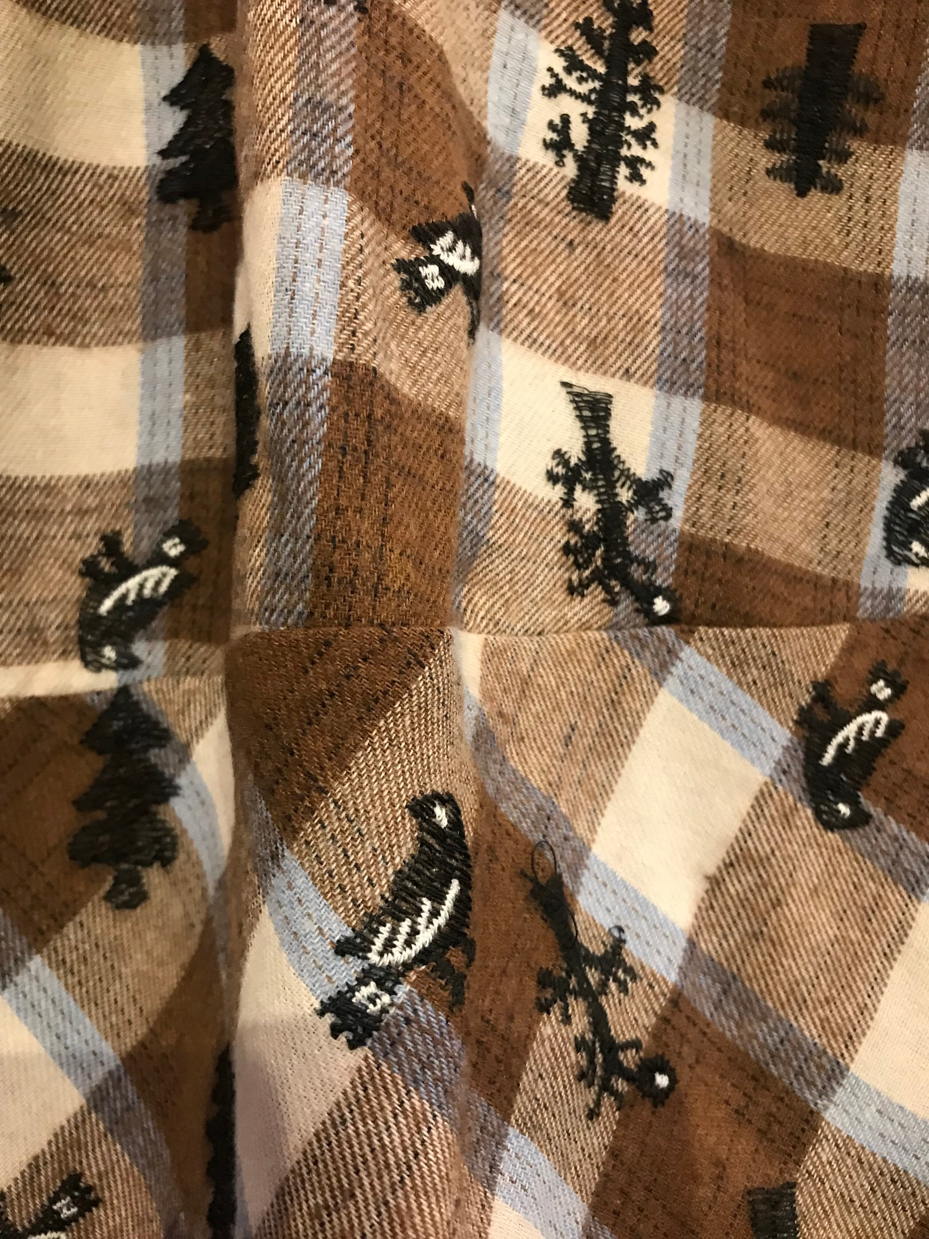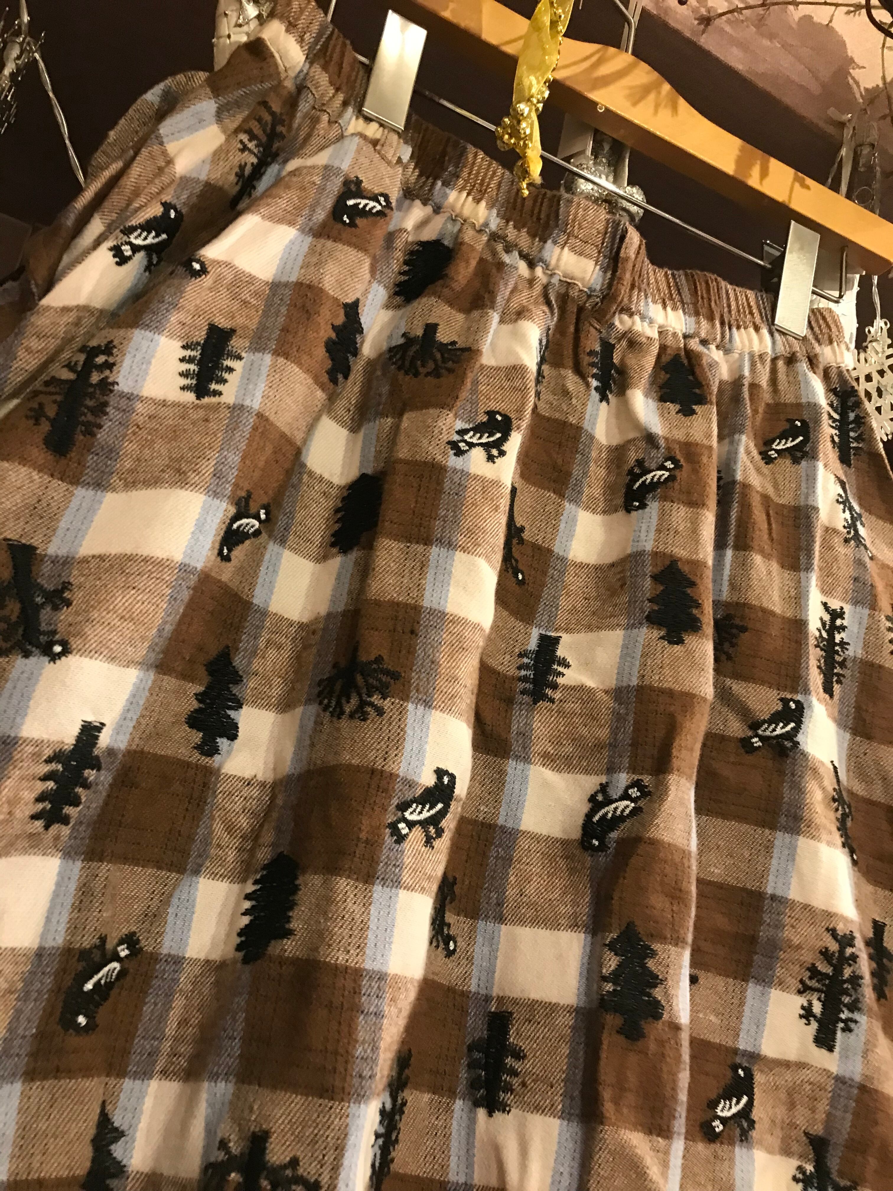 少し起毛のあるチェック生地に刺繍がはいったスカートです。